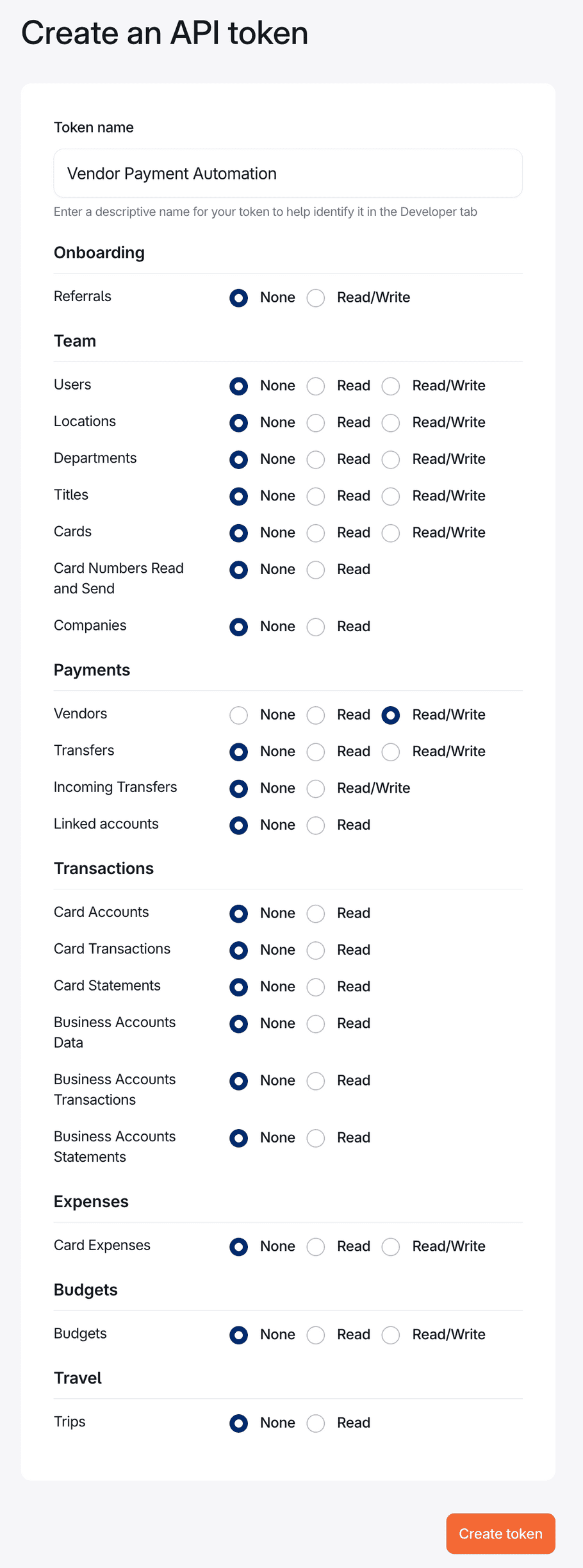 You've now created your Brex API token - just one of many if you support multiple vendors. Each one adds new auth flows, schema differences, and ongoing maintenance.