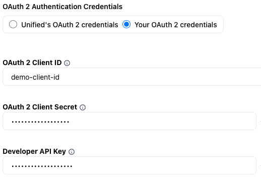 - Copy and paste these values into their respective fields on the page. Make sure that Your OAuth 2 credentials is selected above.